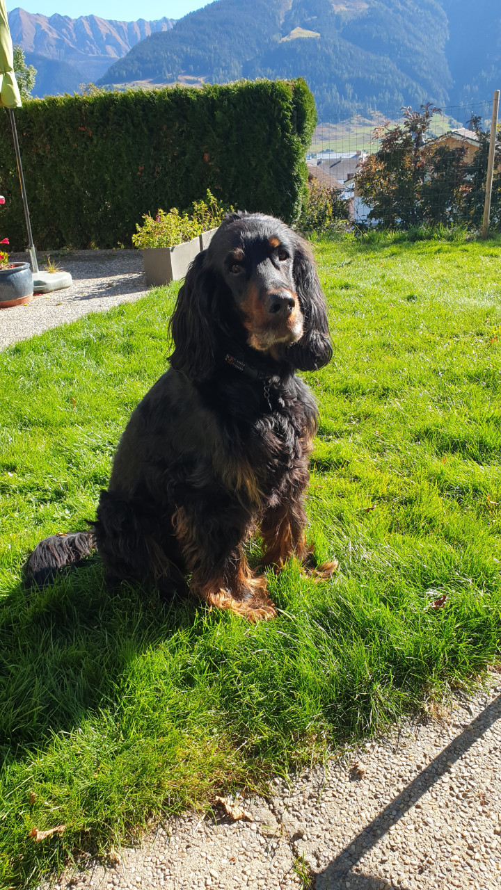 Ein Hotel für Hund und Chef.» Super, dachte ich, das tönt gut. Die Leute von Surselva Tourismus kenne ich, das kommt gut. Wochen später fahren wir dann also frohgemut über die Autobahn in die Surselva. Im neuen Kreisel vor Ilanz verpassen wir die richtige Ausfahrt und folgen dann etwas fehlgeleitet der alten Kantonsstrasse entlang dem Flüsschen Glogn. Einige Kilometer später biegen wir rechts ab Richtung Peiden und kurven hinauf bis nach Vella. Das Gravas finden wir sofort. Strahlend schön ist das Wetter, frisch die Bergluft und irgendwoher riecht's gut nach Hunde-Kolleginnen und -Kollegen. Der Chef setzt mich auf die Rezeptio, aber ich kann ja nicht schreiben...